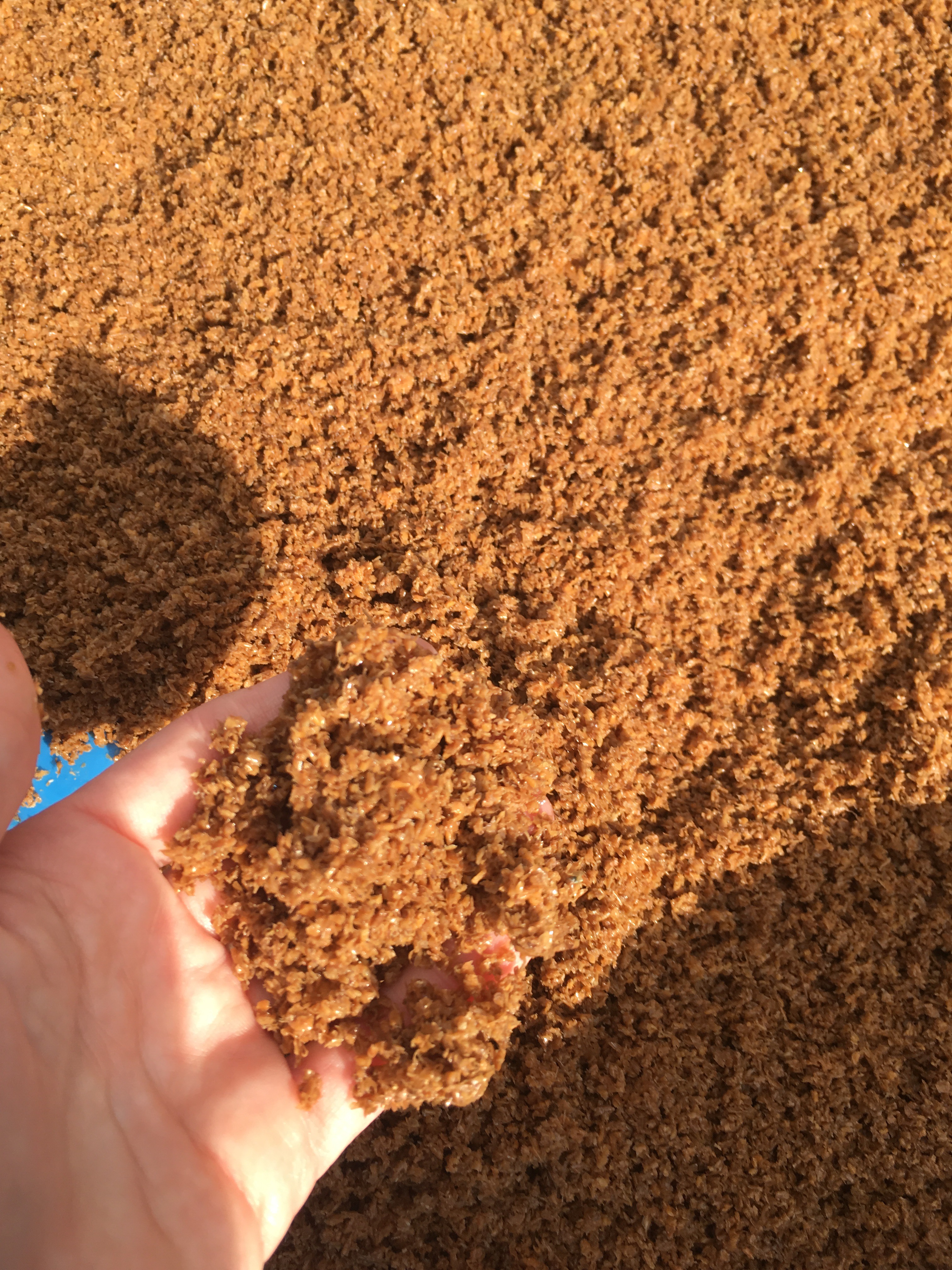 Two weeks later we opened the garbage bag. It had a sweet yeasty smell almost like beer. Ready to dry in the sun!!