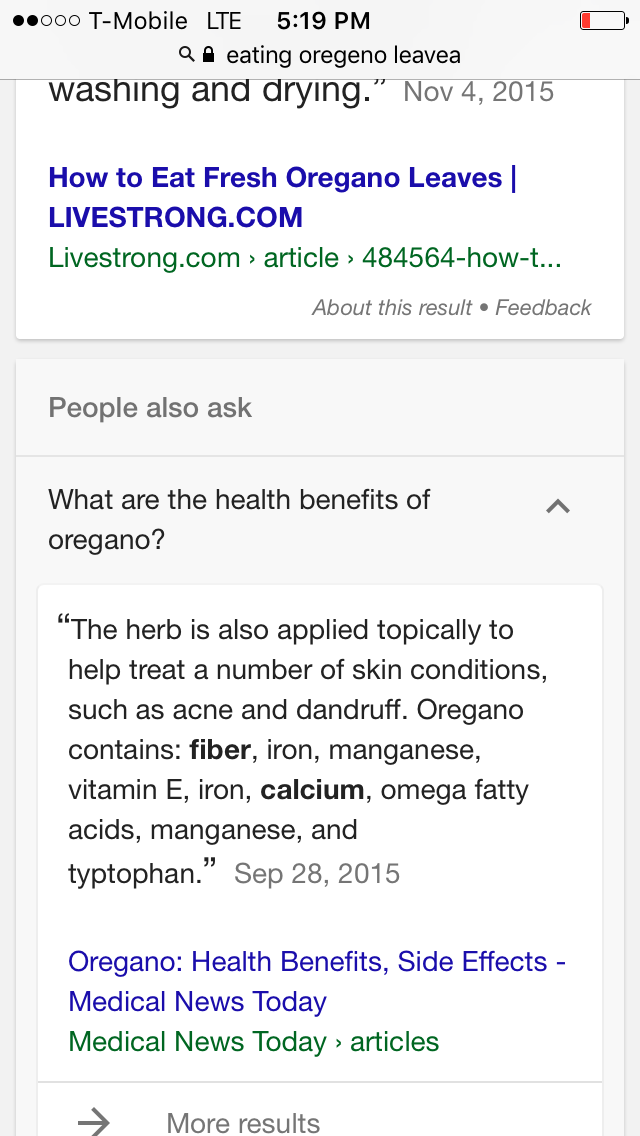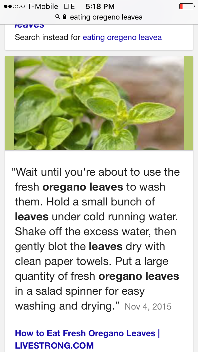 Then, grabbed a handful from my plants sitting on the counter of rosemary + oregano. I googled the benefits of eating oregano, look at the screenshots!