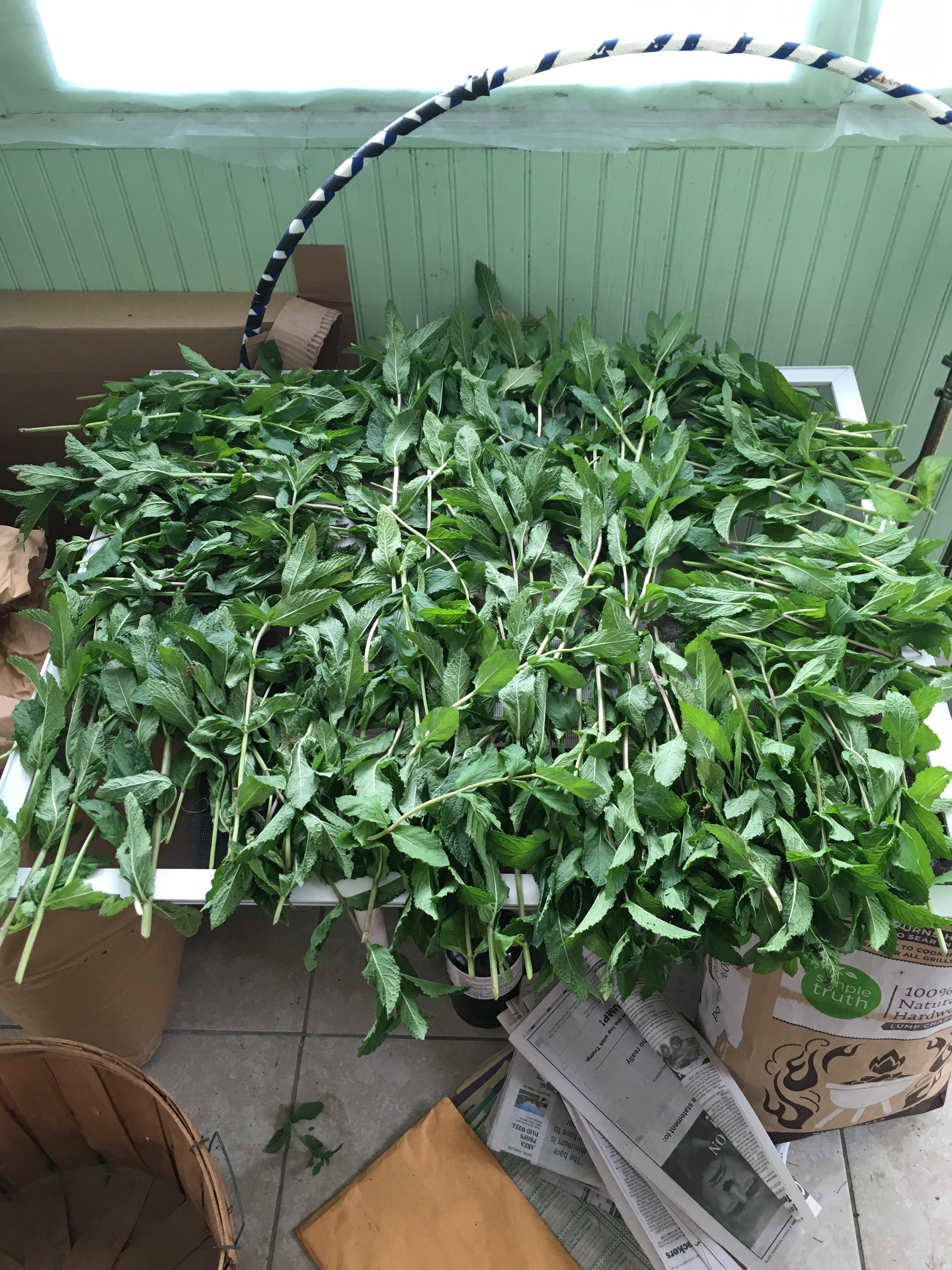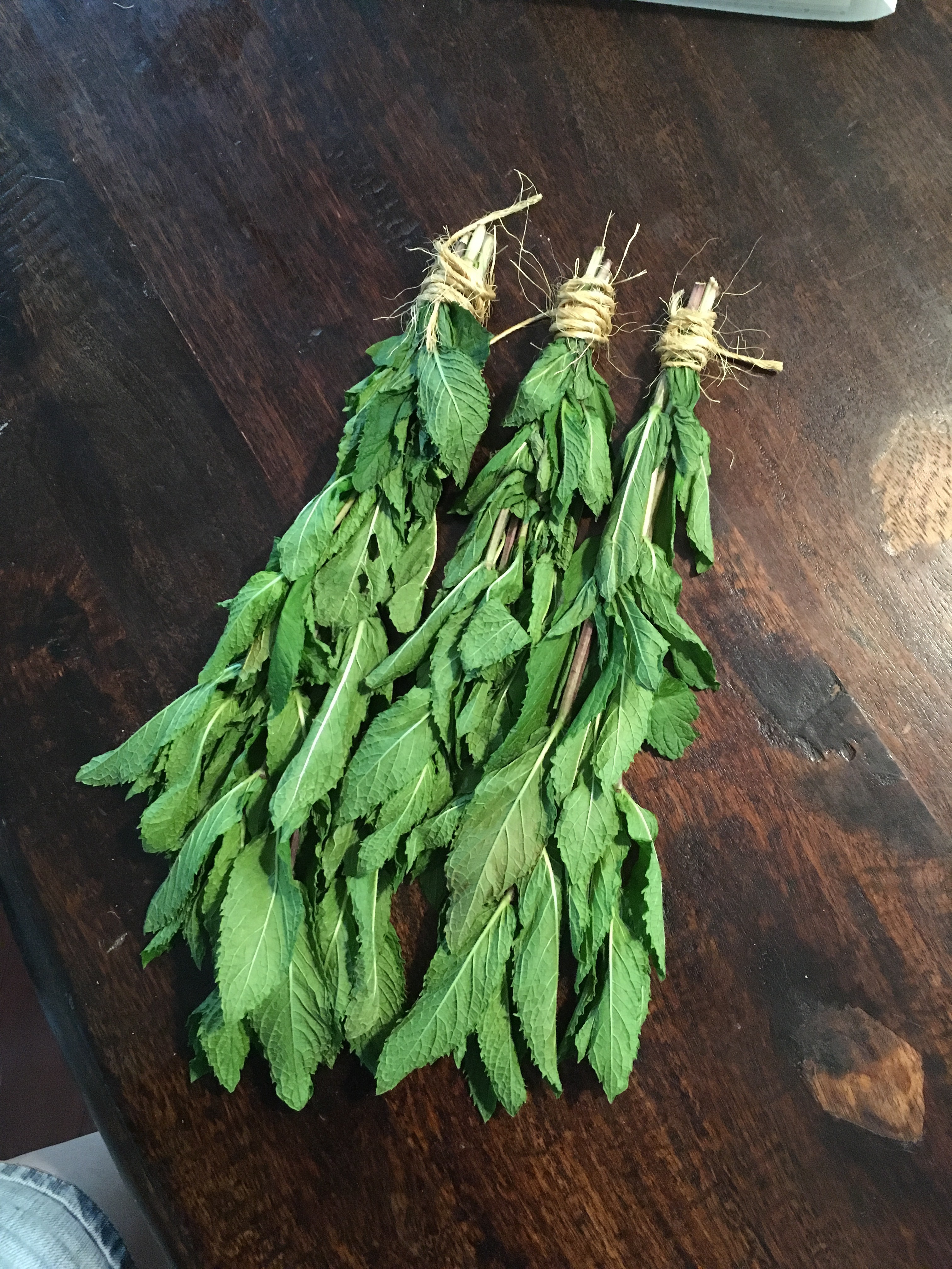 I’m drying some with twins upside down. I read the mint will be stronger. I also laid a lot out on a window screen that had broken, so it become an upcycled drying rack.