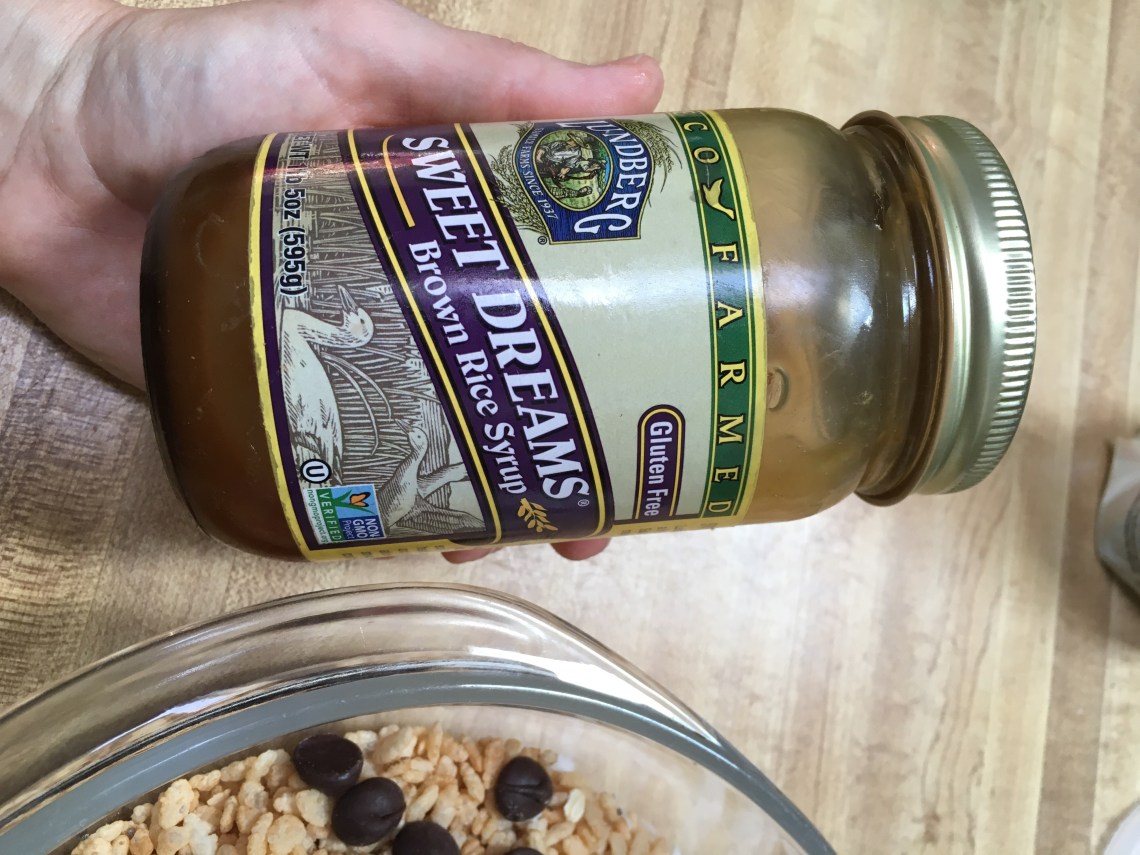 In a small sauce pan over medium low heat, combine peanut butter, brown rice syrup and vanilla, stirring occasionally, for 4 to 8 minutes. Heat until ingredients are softened and easily stirred. Poor peanut butter mixture over dry ingredients, and stir with a wooden spoon to mix very well. I also make these like rice crispy treats where I put my dry ingredients into my sauce pan to mix.