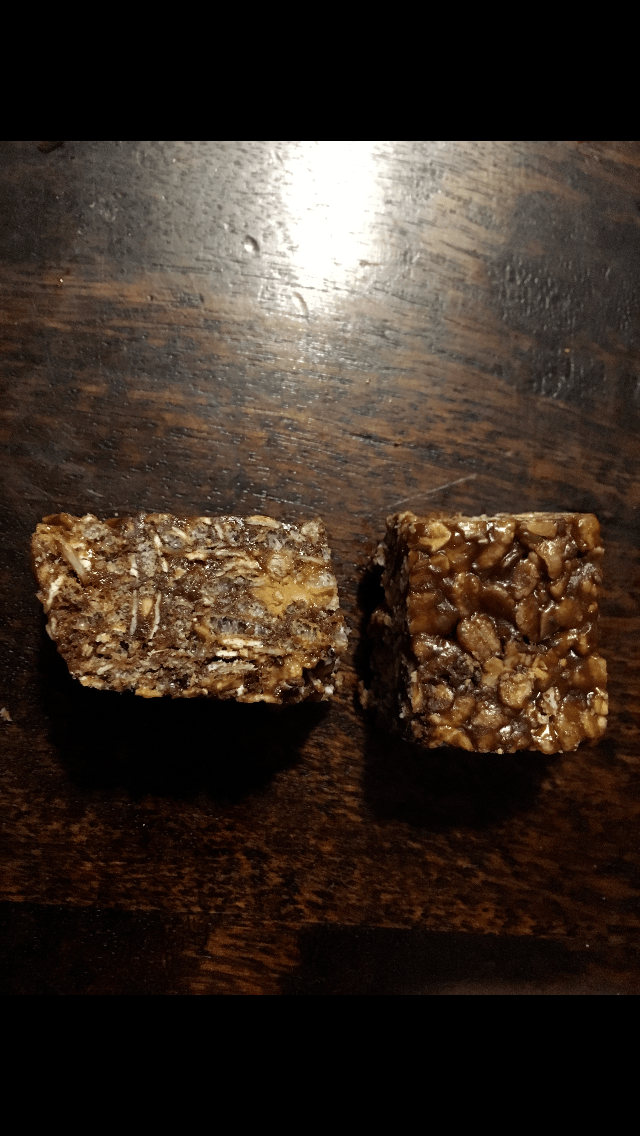 If you’re using chocolate chips, make sure they are frozen. I used room temperature chocolate chips for my first batch and it turned my bars chocolatey throughout. While it was good, I’d rather had individual chocolate chips throughout.